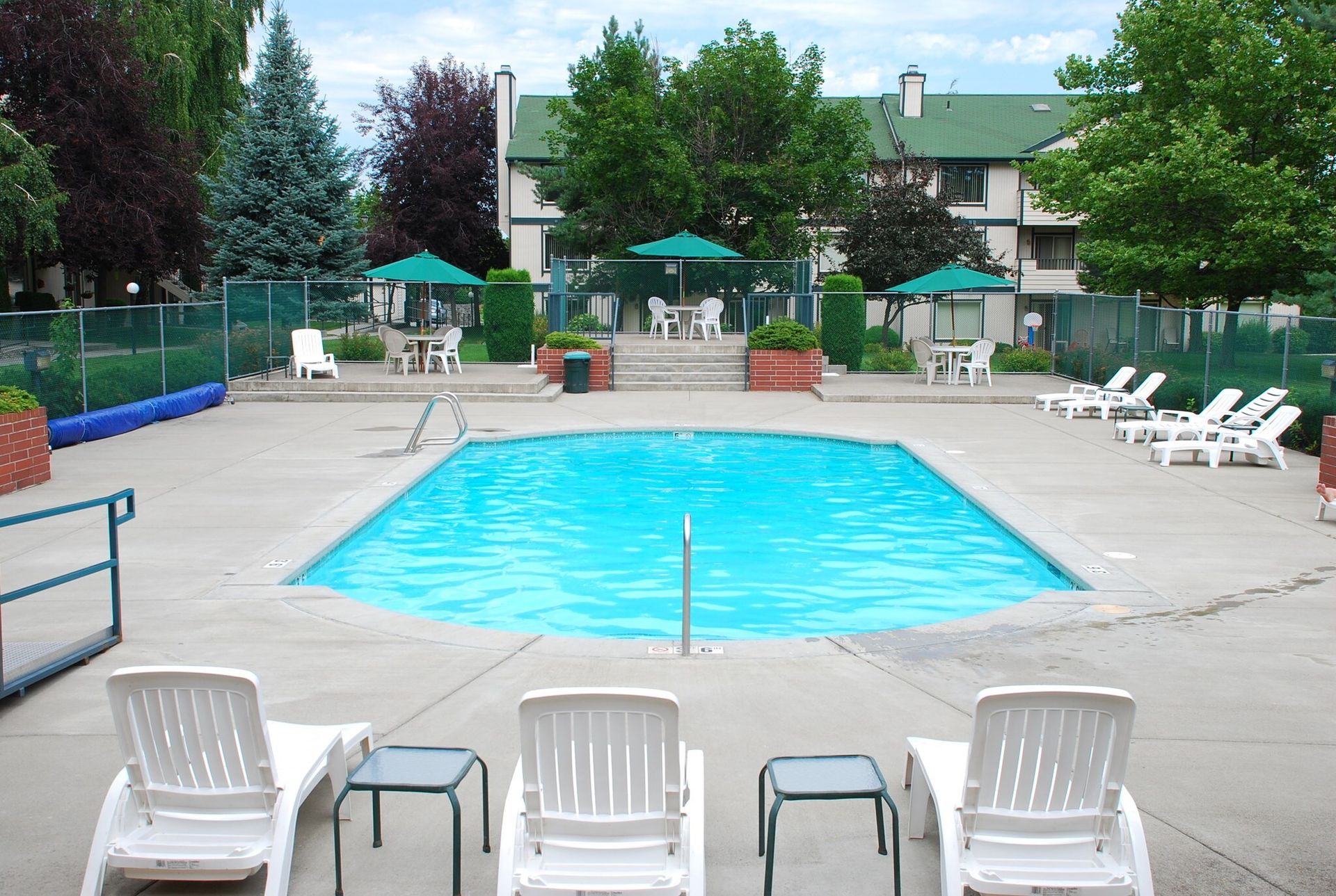 Enjoy the lush green grass of the courtyard and the gated swimming pool area that is connected to a pavilion style outdoor picnic area.