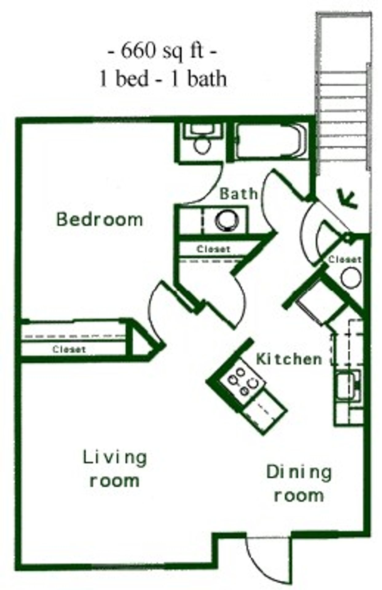 Top Floor 1bed/1bath 660sqdt $1065/mo. - 1 MONTH FREE!
